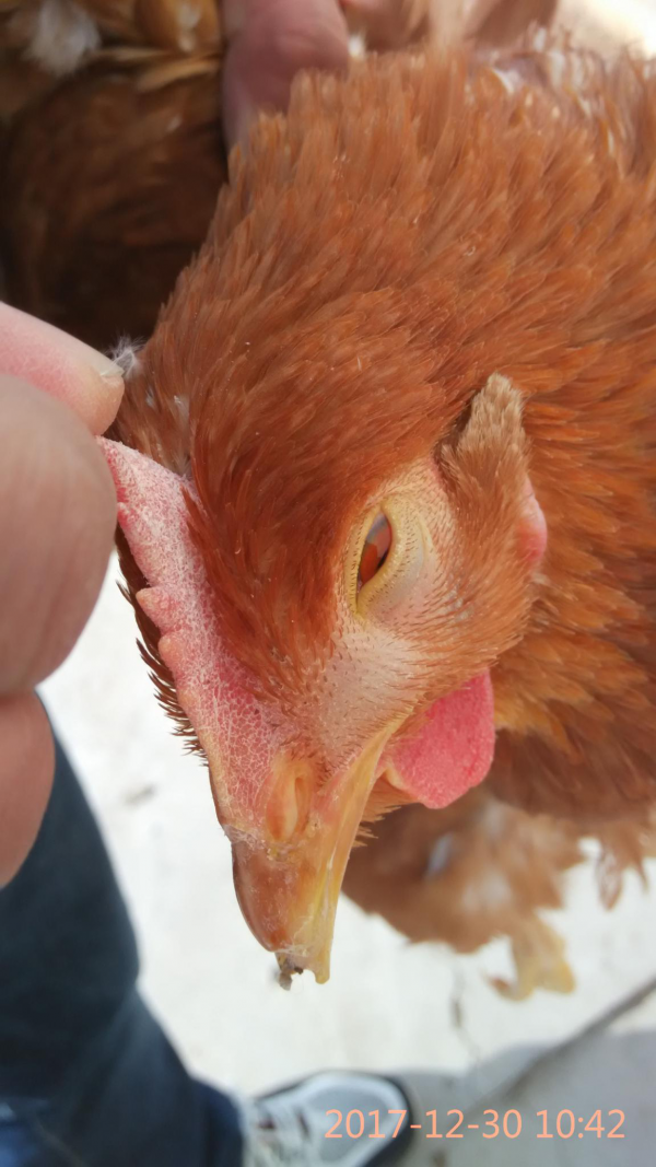IC在雞育成階段和產蛋階段高發,各個品種雞對Apg都易感,尤其是8-16周齡階段育成及產蛋雞群。老齡雞感染較為嚴重。發病初期主要表現為采食量和飲水量輕微下降,打噴嚏,流出的鼻液先為清亮色,三到四天后轉為白色膿性鼻涕,并伴著流淚,眼腫大,嚴重時整個頭部腫大,眼睛內陷,部分蛋雞眼睛失明。IC的一個特征是潛伏期短,接種培養物或分泌物后24-48h內即可發病。