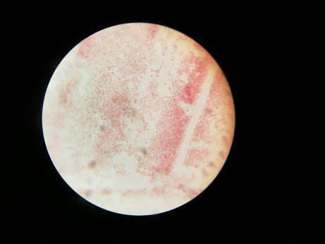 抽取病雞血液,做抹片,革蘭氏染色。見下圖: