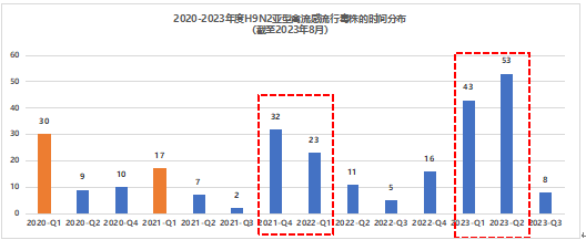 跟蹤2020年-2023年的數據,很明顯H9的發病有趨同性,主要集中在每年冬春季節。